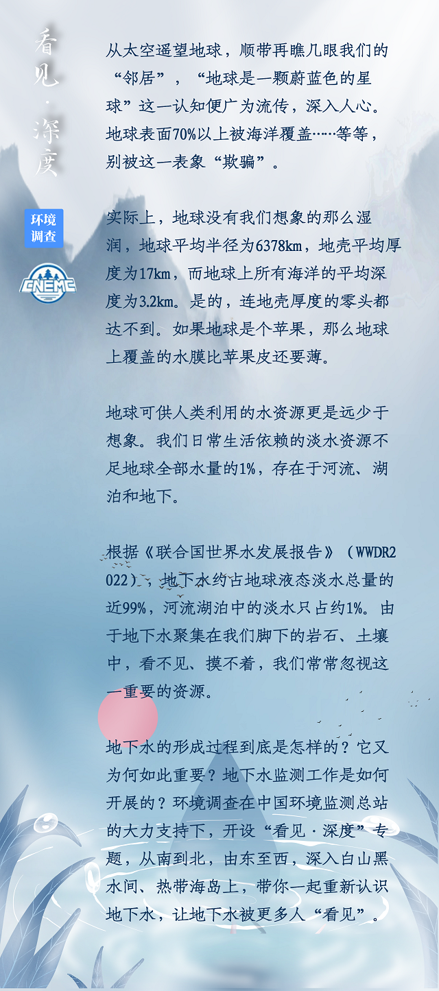 2022年“世界水日”主題為“Groundwater-Making the Invisible Visible”,即“珍惜地下水,珍視隱藏的資源”。