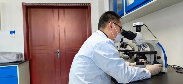 工作人員對水樣進行化驗檢測