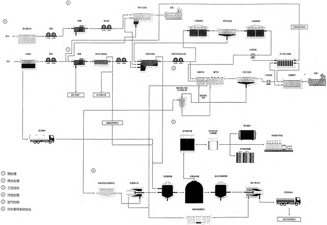 對于污水,100%全流程二級處理+深度處理;對于雨水,首先經過格柵和沉淀,然后視流量決定去向。