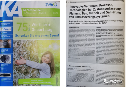 為紀(jì)念德國(guó)水協(xié)DWA成立75周年,DWA下屬的排水系統(tǒng)主委員會(huì)在德國(guó)水協(xié)刊物《Korrespondenz Abwasser Abfall》(污水與垃圾專業(yè)雜志)(2023年1月刊)發(fā)表了題為“排水系統(tǒng)現(xiàn)狀調(diào)查,規(guī)劃,建設(shè),運(yùn)營(yíng),修復(fù)的創(chuàng)新工藝,方法,技術(shù)”的文章。