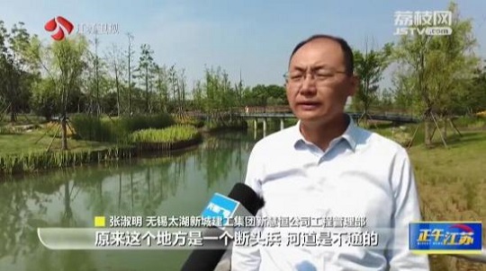 無錫太湖新城建工集團新慧恒公司工程管理部張淑明:“原來這個地方是一個斷頭浜,河道是不通的,通過改造我們使河道連通,水能正常流動起來。在岸邊,我們增加了很多的海綿設施,項目采用了雨水花園、植被緩坡帶、植草溝、生物滯留池、雨水濕地、下凹式綠地,透水鋪裝等一些海綿元素。減少了城市徑流外排,減少了面源污染和滿足年徑流總量控制率的要求。”