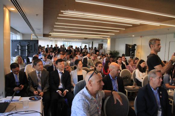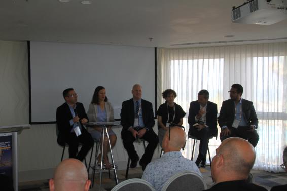 主題報告后由以色列Mekorot工程技術(shù)和戰(zhàn)略規(guī)劃副總裁Yossi Yaacoby先生主持了主題為“通過創(chuàng)新增強韌性”的小組討論,來自以色列水務(wù)局安全應(yīng)急和網(wǎng)絡(luò)高級部門經(jīng)理Danny Lacker先生、以色列創(chuàng)新局初創(chuàng)部門氣候與健康高級總監(jiān)Hagit Schwimmer女士、法國國家水工業(yè)與企業(yè)聯(lián)盟(UIE)董事會蘇伊士企業(yè)風(fēng)險投資總監(jiān)Jean-Luc Venture先生、巴西國家水務(wù)和衛(wèi)生局水務(wù)和社會經(jīng)濟研究主管Felip Tavares先生、美國ICI基金聯(lián)合創(chuàng)始董事總經(jīng)理Gili Elkin女士參加了討論。