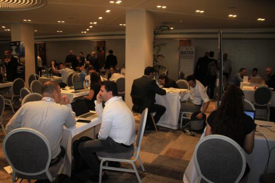 27日下午進行了企業(yè)B2B一對一洽談環(huán)節(jié),根據(jù)會議注冊時參會嘉賓選擇確定的洽談名單逐一進行。參加B2B交流的以色列企業(yè)有以色列最大的水務(wù)公司Mekorot、海水淡化技術(shù)工程公司IDE、空氣制水技術(shù)公司W(wǎng)atergen、智慧水務(wù)公司KANDO、基于人造衛(wèi)星的管道漏損探測公司ASTERRA、管網(wǎng)漏損檢測及評估公司Aquarius Spectrum、水質(zhì)安全實時檢測公司CyWat公司、過濾技術(shù)公司Amiad、新型生物處理填料公司AqWise、無線自動抄表數(shù)據(jù)網(wǎng)絡(luò)公司Arad、紫外線消毒技術(shù)公司Atlantium、高質(zhì)量液壓控制閥公司BERMAD、強化生物處理SBP膠囊公司BioCastle、免開挖自動漏損修復(fù)公司Curapipe等。
