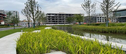 海綿城市建設(shè),不僅是綠化、凈化、美化城市的“面子”工程,更是提升城市環(huán)境品質(zhì)、增強(qiáng)人民群眾獲得感、幸福感的“里子”工程。建成后的園區(qū)將呈現(xiàn)“碧水環(huán)洲”的景觀效果,為使用者營(yíng)造身處“綠色林帶”的環(huán)境氛圍。