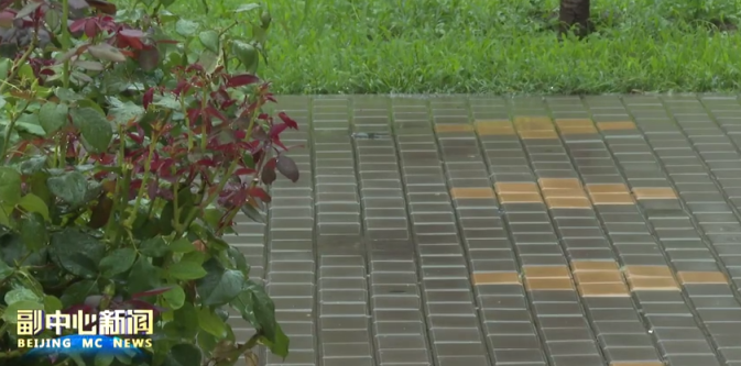 通州區(qū)海綿辦工作人員康振:“咱們腳底下透水磚下面,有透水的混凝土的墊層,下邊有碎石層,再下邊有細沙層,當這雨水降落到廣場上的時候,首先會通過透水磚,一層一層的,就剛才說的這堆透水結構,一層一層向下去滲透 給市政雨水的排水管線,還有河道,短時間之內減少行洪壓力。”