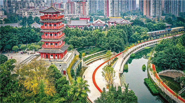 整治后的棠城公園 碧波蕩漾入畫來。劉航攝
