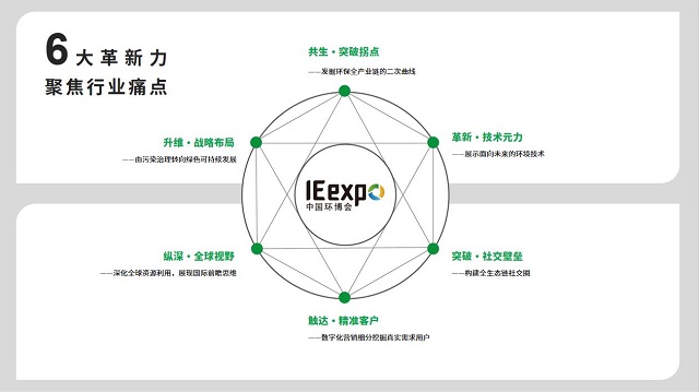 為適應(yīng)當(dāng)前的發(fā)展形勢(shì),中國(guó)環(huán)博會(huì)IE expo將持續(xù)推進(jìn)六大能力的自我革新,即:一、拓展數(shù)智化等跨界產(chǎn)業(yè)與傳統(tǒng)環(huán)保產(chǎn)業(yè)的共融交集,提升平臺(tái)“共生力”,發(fā)掘環(huán)保全產(chǎn)業(yè)鏈內(nèi)的發(fā)展第二曲線;二、由污染治理轉(zhuǎn)向綠色可持續(xù)發(fā)展,培育在碳中和領(lǐng)域的戰(zhàn)略布局,提升平臺(tái)“升維力”;三、展出面向未來(lái)的環(huán)境技術(shù),提升平臺(tái)“革新力”,提升環(huán)保科技創(chuàng)新動(dòng)能;四、深化IFAT全球資源的利用,展現(xiàn)國(guó)際前瞻思維,提升平臺(tái)“視野力”;五、創(chuàng)造平臺(tái)打破創(chuàng)新鏈、產(chǎn)業(yè)鏈、資金鏈、人才鏈的融合壁壘,提升平臺(tái)“社交力”;六、深化數(shù)字營(yíng)銷體系,配合發(fā)起關(guān)鍵營(yíng)銷戰(zhàn)役,精準(zhǔn)聚攏真實(shí)需求用戶人群,提升平臺(tái)“觸達(dá)力”。