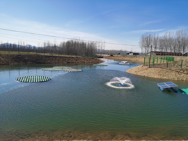 嘉祥縣水務(wù)局副局長(zhǎng)王新榮介紹:“我們?cè)诿恳惶幙犹炼寂涮琢颂?yáng)能曝氣設(shè)備,增加水氧含量,打造‘凈水、增氧、控藻’的多功能復(fù)合生態(tài)系統(tǒng)。同時(shí),修建回流井,在陰雨天及夏季高溫天氣啟動(dòng)運(yùn)行,補(bǔ)充水體流通,促進(jìn)水系循環(huán),提升水體自凈能力。”