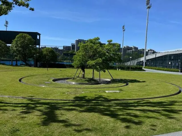 杭州市拱墅運河亞運公園這棵樹底下就是1600立方米的雨水回用裝置。