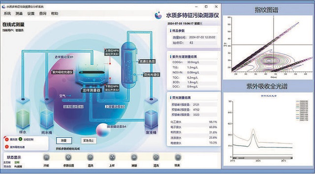 在現(xiàn)場記者看到,設(shè)備屏幕上出現(xiàn)一個(gè)水質(zhì)多源光譜信息和相應(yīng)的溯源比對結(jié)果,從外觀上看,與人的指紋有幾分相似。曹毅進(jìn)一步解釋道,“鑒于不同廢水樣本中化學(xué)成分的千差萬別,每一種廢水都攜帶著其特有的熒光光譜與紫外光譜‘指紋’。我們正是通過捕捉這些水樣中的熒光、紫外等特征光譜信息,如同解鎖密碼一樣,助力我們迅速鎖定污染源頭。這一技術(shù)不僅是實(shí)現(xiàn)‘源頭治污、精準(zhǔn)治污、科學(xué)治污、依法治污’理念的重要基石,更是推動環(huán)境保護(hù)邁向智能化、精細(xì)化的關(guān)鍵一步。”