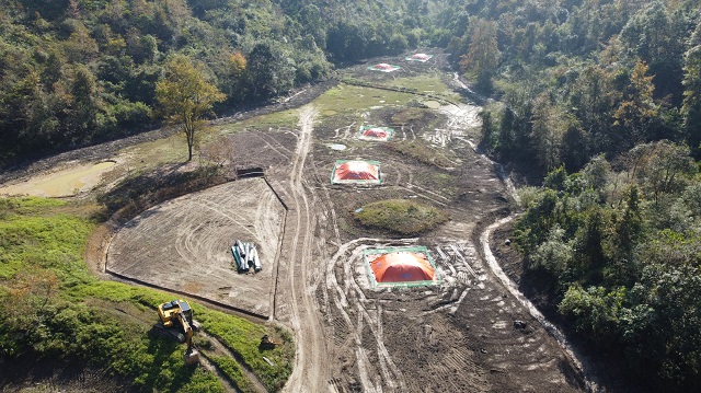 圖為河池市生態環境局指導項目實施方對三鏡巖溶洼地開展進場道路修建。