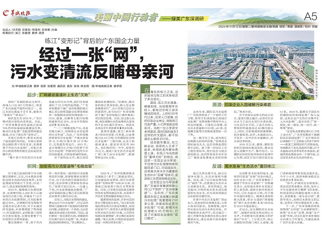 這支國(guó)企治污軍團(tuán)便是廣東省環(huán)保集團(tuán)有限公司(以下簡(jiǎn)稱“廣東環(huán)保集團(tuán)”)。五年間,廣東環(huán)保集團(tuán)在練江流域累計(jì)新建污水處理廠配套管網(wǎng)2191多公里,共建成和運(yùn)營(yíng)污水處理廠10座,新增污水處理能力45萬(wàn)噸/日,打造了環(huán)境綜合治理的“練江模式”。