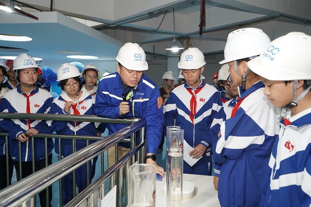 如果不是大門口寫(xiě)著“中國(guó)節(jié)能六廣門再生水廠”的牌子,很多人可能意識(shí)不到,在貴州省貴陽(yáng)市的心臟地帶,隱藏著一座“看不見(jiàn)”的再生水廠。近日,記者跟隨貴陽(yáng)中節(jié)能水務(wù)有限公司舉辦的“清水探源——走進(jìn)六廣門再生水廠”科普教育活動(dòng),與貴陽(yáng)市第二十三中學(xué)的30余名師生及多家媒體代表,共同揭開(kāi)了貴陽(yáng)污水治理的科技面紗。