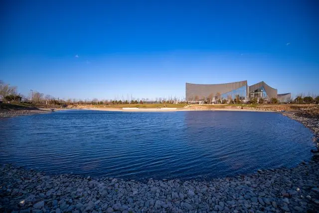 位于通州區的城市副中心三大文化建筑園區里,道路路面采用了透水鋪裝,綠化區域設置了比路面低5到10厘米的下凹式綠地或雨水花園,建筑物屋頂也設置了雨水截流設施。在北京藝術中心的西側,還有一個“生態湖”,也是園區里的海綿設施之一——調蓄水體。園區內道路、建筑物、綠地等處匯集的雨水,通過管道排入調蓄水體,既能滿足生態景觀需求,又能將節約下來的雨水資源用作園區綠化澆灌和消防取水點?!巴ㄟ^這些海綿設施,現在園區95%的雨水都可以就地消納?!备敝行娜笪幕ㄖ@區海綿項目設計師趙子晴說。