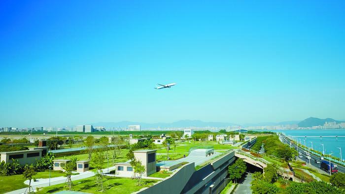 高崎水質(zhì)凈化廠位于廈門本島高崎機場以南,通過半地下集約式的建設(shè)形式,上層建設(shè)屋頂花園、中間層設(shè)為運營維護空間、地下層布置污水污泥處理構(gòu)筑物和管道,將城市景觀、運營維護、污水處理三大功能上下疊合,從空間上高效利用土地資源,實現(xiàn)20萬噸/日的處理規(guī)模。同時,為廈門本島高崎機場T4航站樓的開發(fā)預(yù)留景觀延伸帶,將稀缺景觀資源帶給市民,構(gòu)建了“人水和諧”的全新生態(tài)空間。