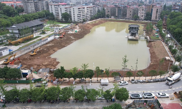 6月24日,在“兩湖”綜合治理工程調蓄池及雨水循環中心工程現場,工人在進行掃尾工作。工程建成后,初期雨水將實現就地處理,達標后直接補充湖水,讓兩湖煥發新的生機與活力。工程除了水處理及辦公功能外,還將為市民呈上全新的生態文化景觀,增添又一休閑好去處。