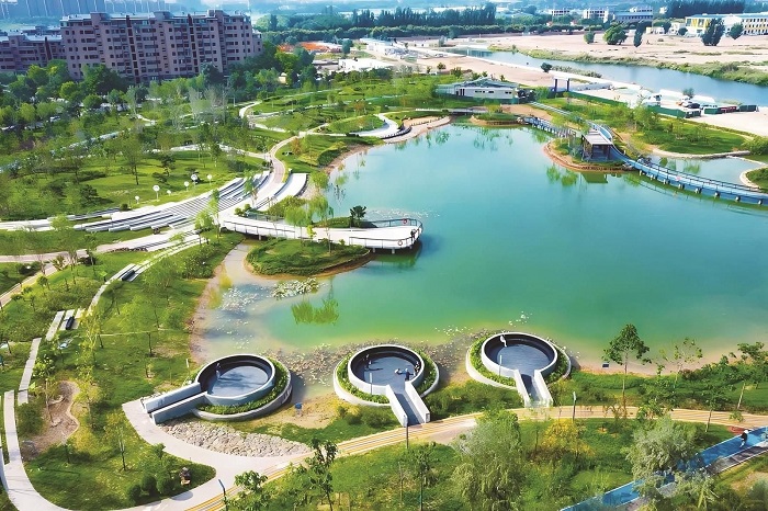 在海綿城市的建設過程中,銀川市按照“西防水、中理水、東治水”總體思路,明確“源頭減排、過程控制、末端處理”的系統(tǒng)化治理措施。銀川市住房和城鄉(xiāng)建設局相關負責人介紹,自2022年以來,共申報住房和城鄉(xiāng)建設部打包類示范項目8大類80個項目,累計實施內(nèi)澇積水治理、公園綠地、海綿型道路等項目157個、總投資69.7億元,目前已完工項目145個、完成總投資49.3億元。尤其是實施了賀蘭山東麓攔洪庫提標改造5處、水系綜合治理114公里,建設海綿型道路40公里,優(yōu)化雨水管網(wǎng)62公里,有效緩解了道路積水、污水廠超負荷運行等問題。同時,西夏區(qū)南部、金鳳區(qū)中北部兩個示范片區(qū)也在加速建設當中,投入使用后將搭建起雨水下滲、蓄滯、凈化、回用、排放的“海綿系統(tǒng)”。